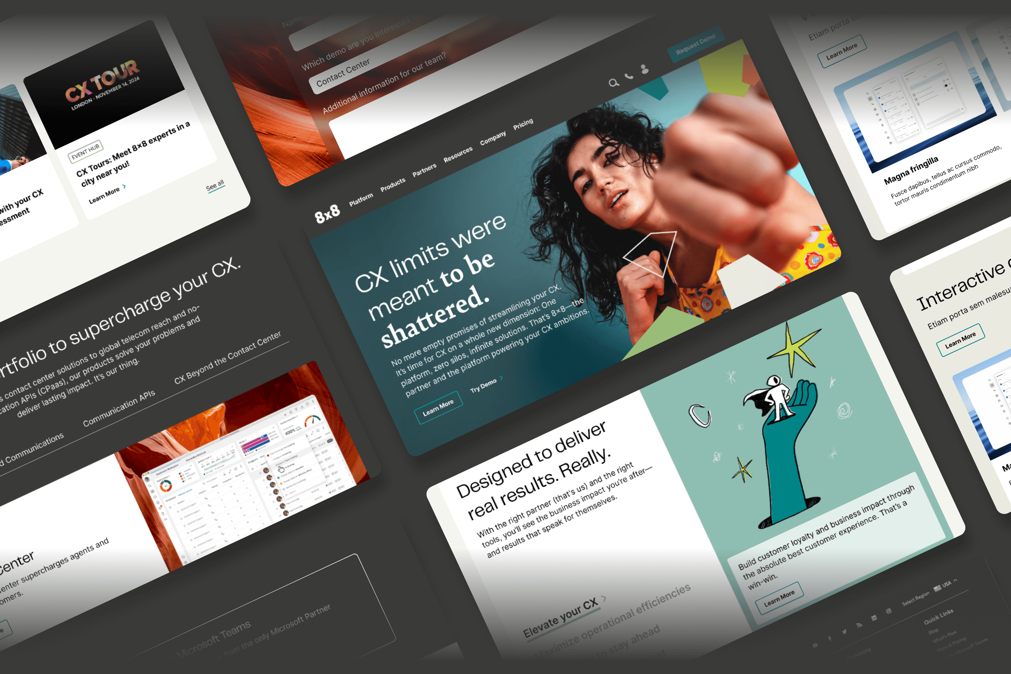 We translated the new 8x8 brand into a scalable web experience by building a flexible design system from scratch. I designed key UI components, rebuilt core pages, and created modular templates used across 50+ marketing and product pages. The result: faster launches, brand consistency, and a site structure that could grow with the business.